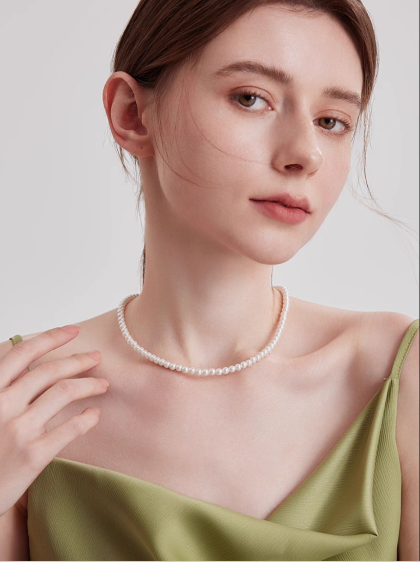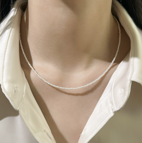 シンプルなパールネックレスなのに、ちょっとしたディテールが個性的で、他の人と被りにくいデザインになっています。自分だけの特別なアクセサリーとして楽しめます。