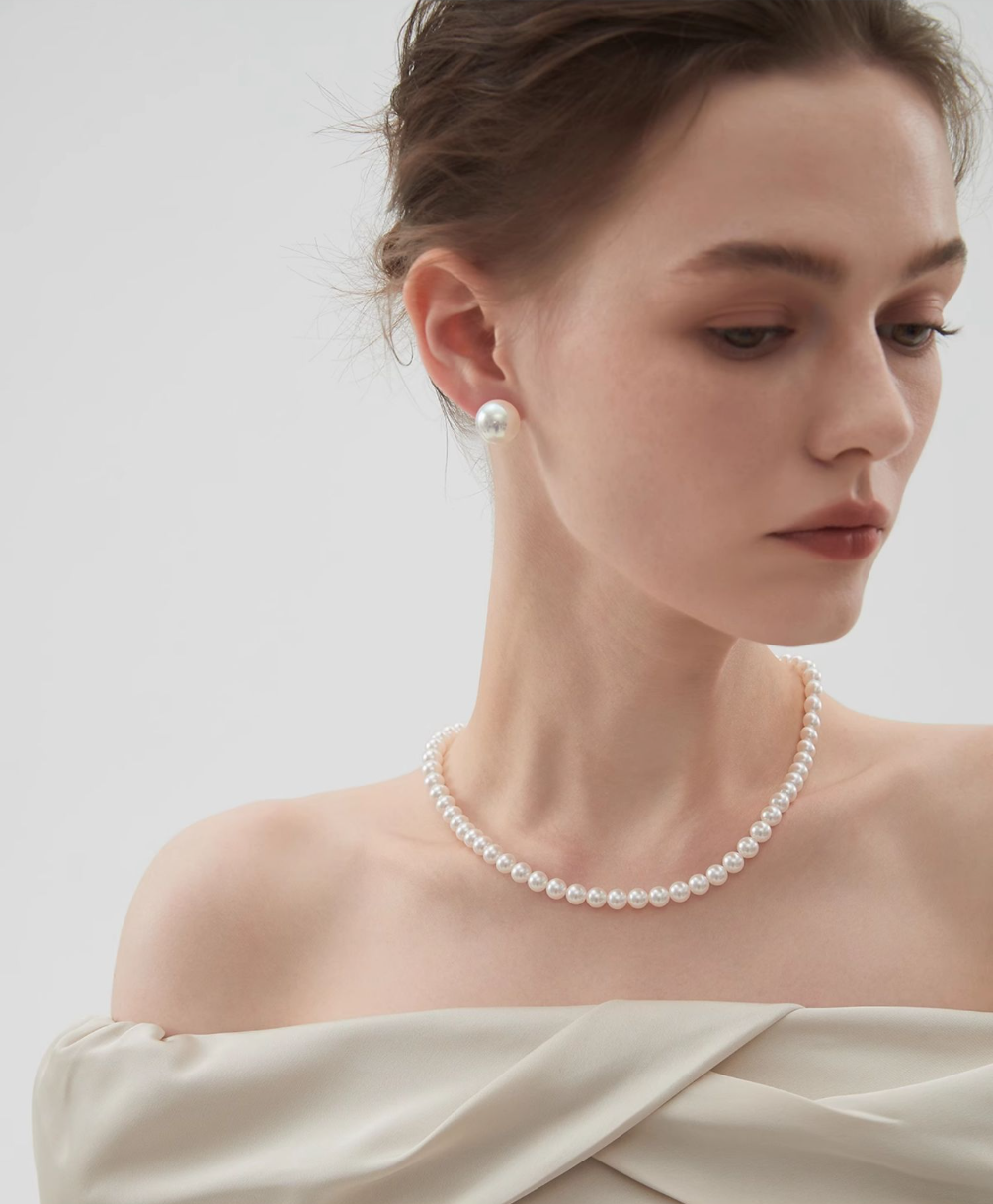 上品で美しいパールを使用しており、ラグジュアリーな雰囲気が漂います。でも、あまり派手すぎず、日常のどんなコーディネートにも自然と溶け込んで、おしゃれ度をアップさせてくれます。