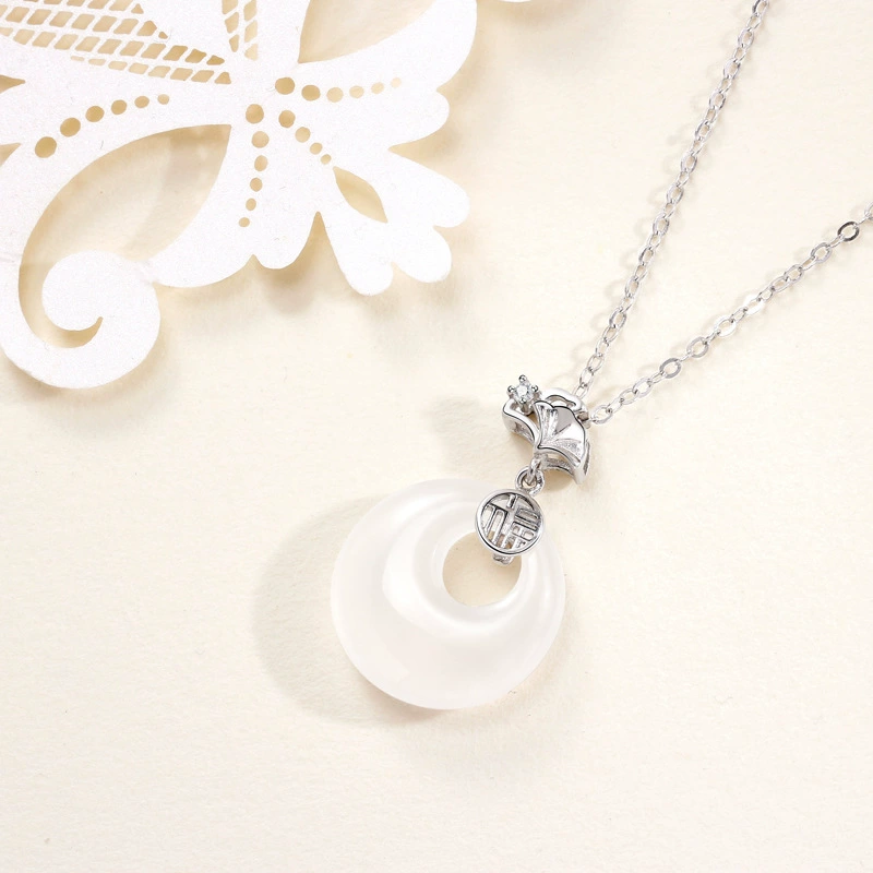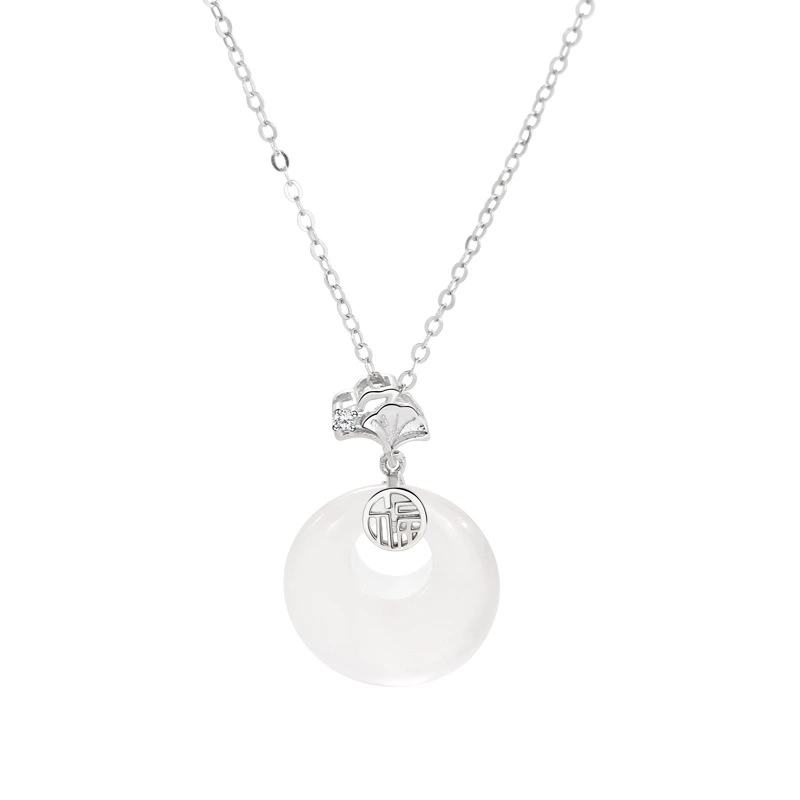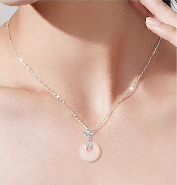 ペンダントには白玉髓を使用しています。その柔らかくて清潔な光沢が、上品で優雅な雰囲気を醸し出し、肌の色を明るく見せてくれます。