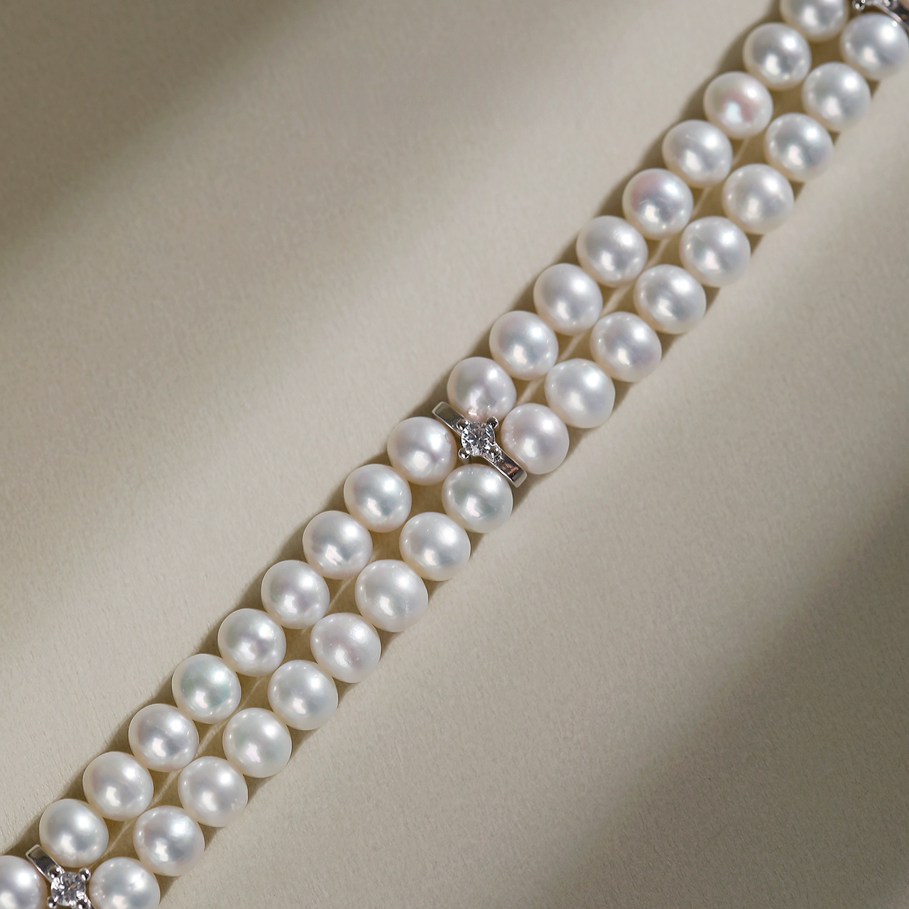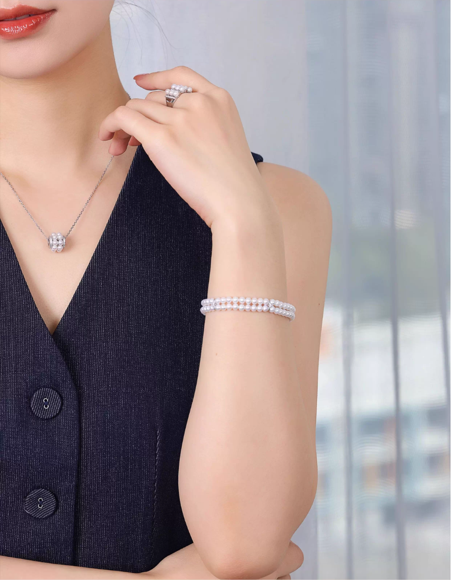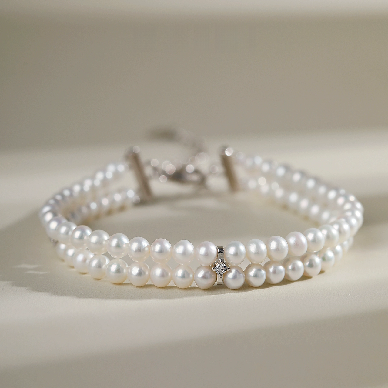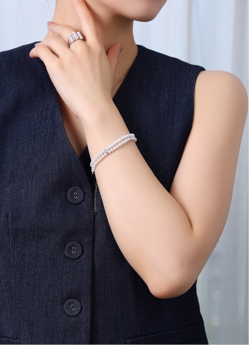 サイズが 4 - 4.5mm と小粒なので、とても可憐で繊細な印象を与えます。個々のパールが持つ艶やかな光沢が、手元に優雅な輝きを添えてくれます。