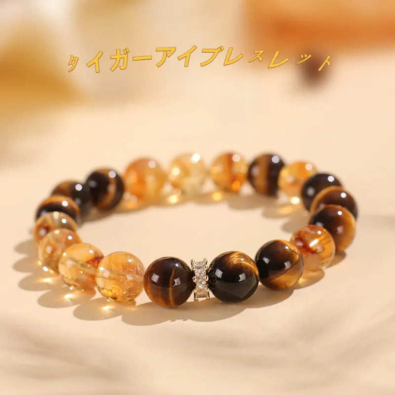 これらのトラの目石ブレスレットは、トラの目石を主役とし、黄水晶(きすいしょう)などの素材と組み合わせており、デザインは多種多様で魅力的です。